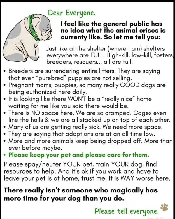 The majority of our adoptees are breeder surrenders as well as owner surrenders. Occasionally we will have intake from other shelters/rescues who are at capacity should we have the space to accommodate. We also offer to post a surrender to our website free of charge should we be at full capacity and are unable to take them into our care.